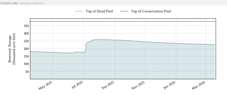 - Keep an eye on lake levels: Canyon Lake’s capacity may look decent, but it’s still well below full and subject to rapid change.